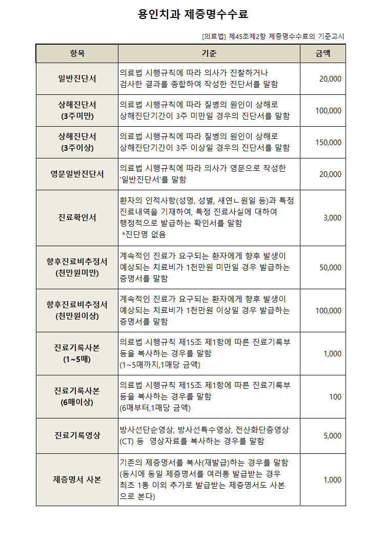 용인치과 제증명 수수료